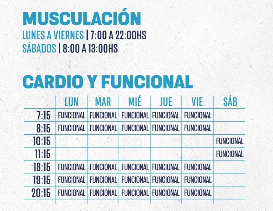 Sabemos lo importante que es arrancar una rutina que te motive, que te haga sentir bien y que se adapte a tus tiempos. Por eso, abrimos las puertas de nuestras clases de Funcional, pensadas para todos los niveles, dinámicas, completas y con el acompañamiento constante de nuestro cuerpo técnico.